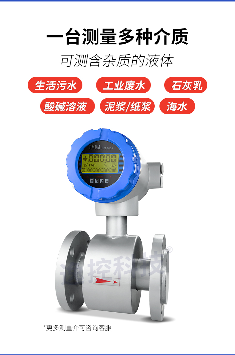 智能電磁流量計是我公司研制開發(fā)的全智能型電磁流量計,中文電磁轉(zhuǎn)換器內(nèi)核采用高速中央處理器。計算速度快、精度高、測量性能可靠。轉(zhuǎn)換器電路輸入阻抗高達1015 歐姆,共模抑制比優(yōu)于100db,對于外來干擾以及60Hz/50Hz 干擾抑制能力優(yōu)于90db,可以測量更低的電導(dǎo)率的流體介質(zhì)流量。其傳感器采用非均勻磁場技術(shù)及特殊的磁路結(jié)構(gòu),磁場穩(wěn)定可靠,而且大的縮小了體積,減輕了重復(fù),使流量計小型流量化的特點。使客戶“買的放心,用的省心,服務(wù)稱心”是我公司的宗旨。