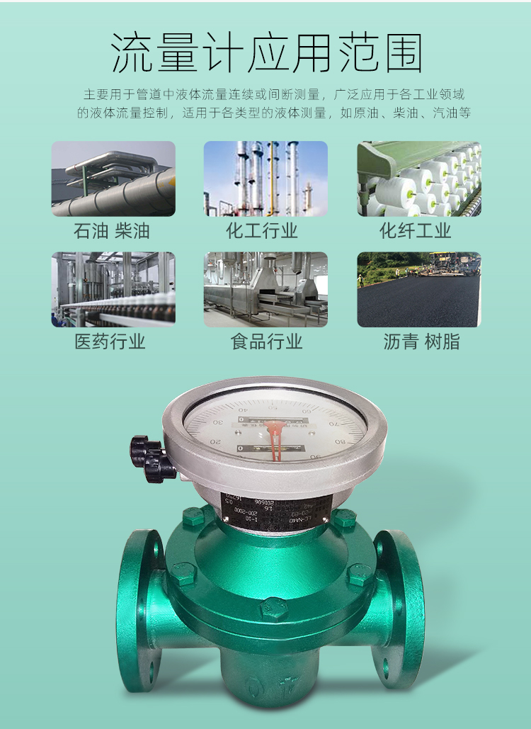 橢圓齒輪流量計(jì)是用于管道中液體流量連續(xù)或間斷測(cè)量和控制的容積式計(jì)量?jī)x表。它具有量程范圍大、準(zhǔn)確度高、壓力損失小、粘度適應(yīng)性強(qiáng)、能測(cè)量高溫高粘液體、標(biāo)定方便、安裝建議等諸多優(yōu)點(diǎn)。適用于石油、化工、化纖、交通、商貿(mào)、食品、醫(yī)藥衛(wèi)生等部門(mén)的流量計(jì)量。