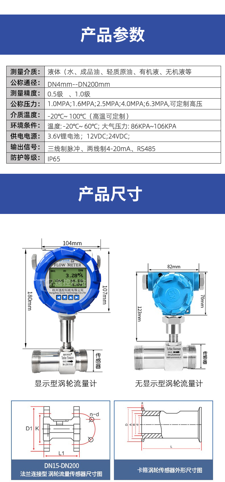 液體渦輪流量計,基于力矩平衡原理,屬于速度式流量儀表。傳感器具有結(jié)構(gòu)簡單、輕巧、精度高、復(fù)現(xiàn)性好、反應(yīng)靈敏,安裝維護使用方便等特點,廣泛用于石油、化工、冶金、供水、 造紙等行業(yè)