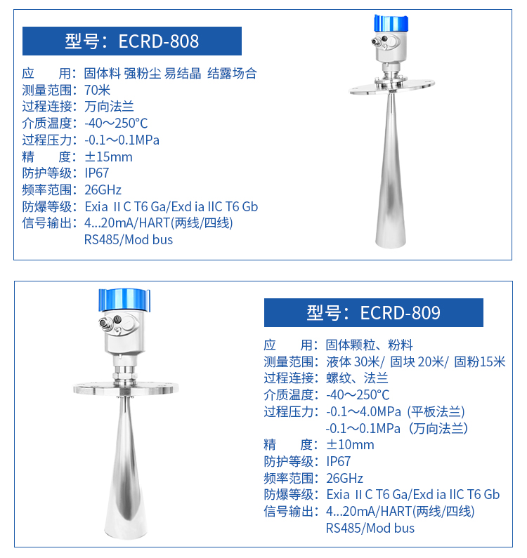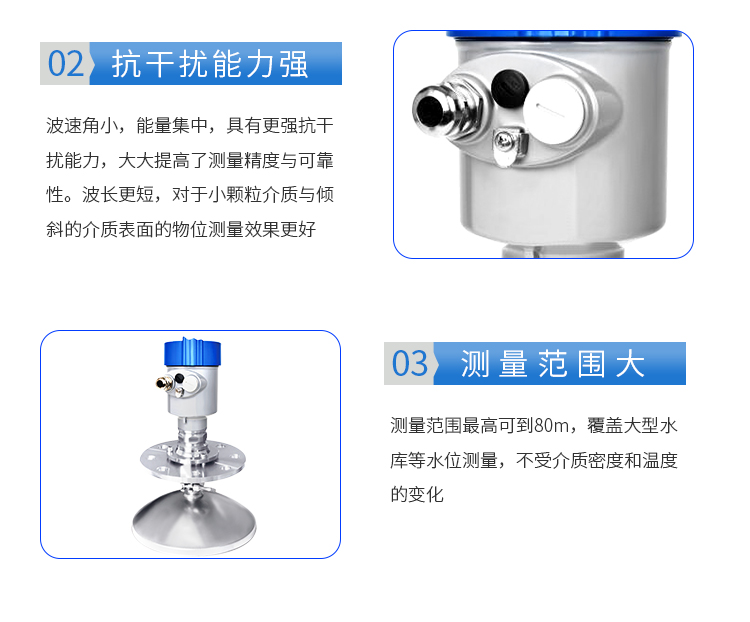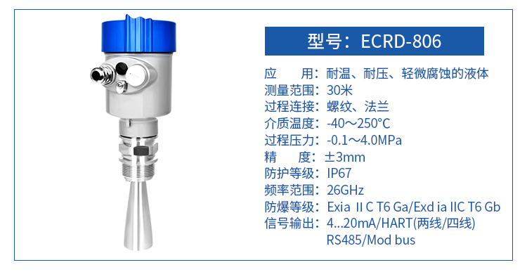 高頻26G雷達(dá)式物位測量儀表,測量距離可達(dá)到80米,天線被進(jìn)一步優(yōu)化處理,新型快速的微處理器可以進(jìn)行更高速率的信號分析處理,使得儀表可以用于反應(yīng)釜、固體料倉等一些復(fù)雜的測量條件。